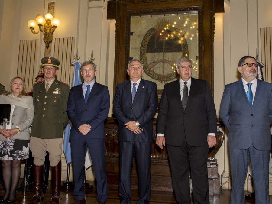 La jornada inició en el Salón de la Bandera con el saludo protocolar del gobernador Morales a funcionarios e invitados. De la tradicional ceremonia fueron parte el ministro Rogelio Frigerio; el vice gobernador, Carlos Haquím; el intendente de San Salvador, Raúl Jorge y el Comandante de la Vta. Brigada de Montaña del Ejército Argentino, Juan Manuel Pulleiro.