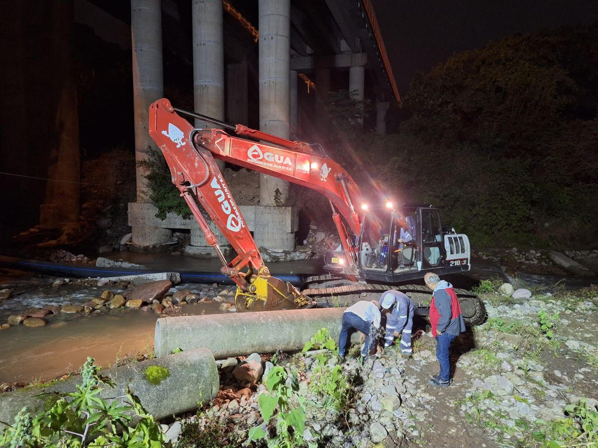 Agua Potable de Jujuy trabaja en la reparación del acueducto a la altura del puente Paraguay
