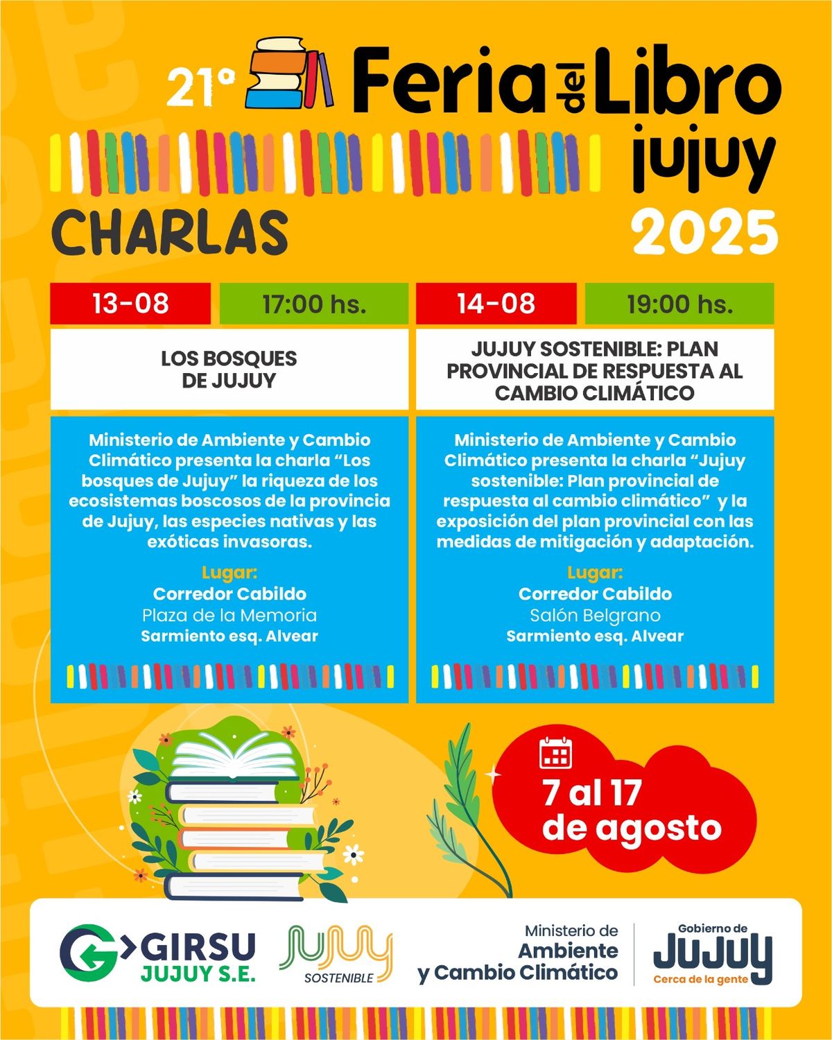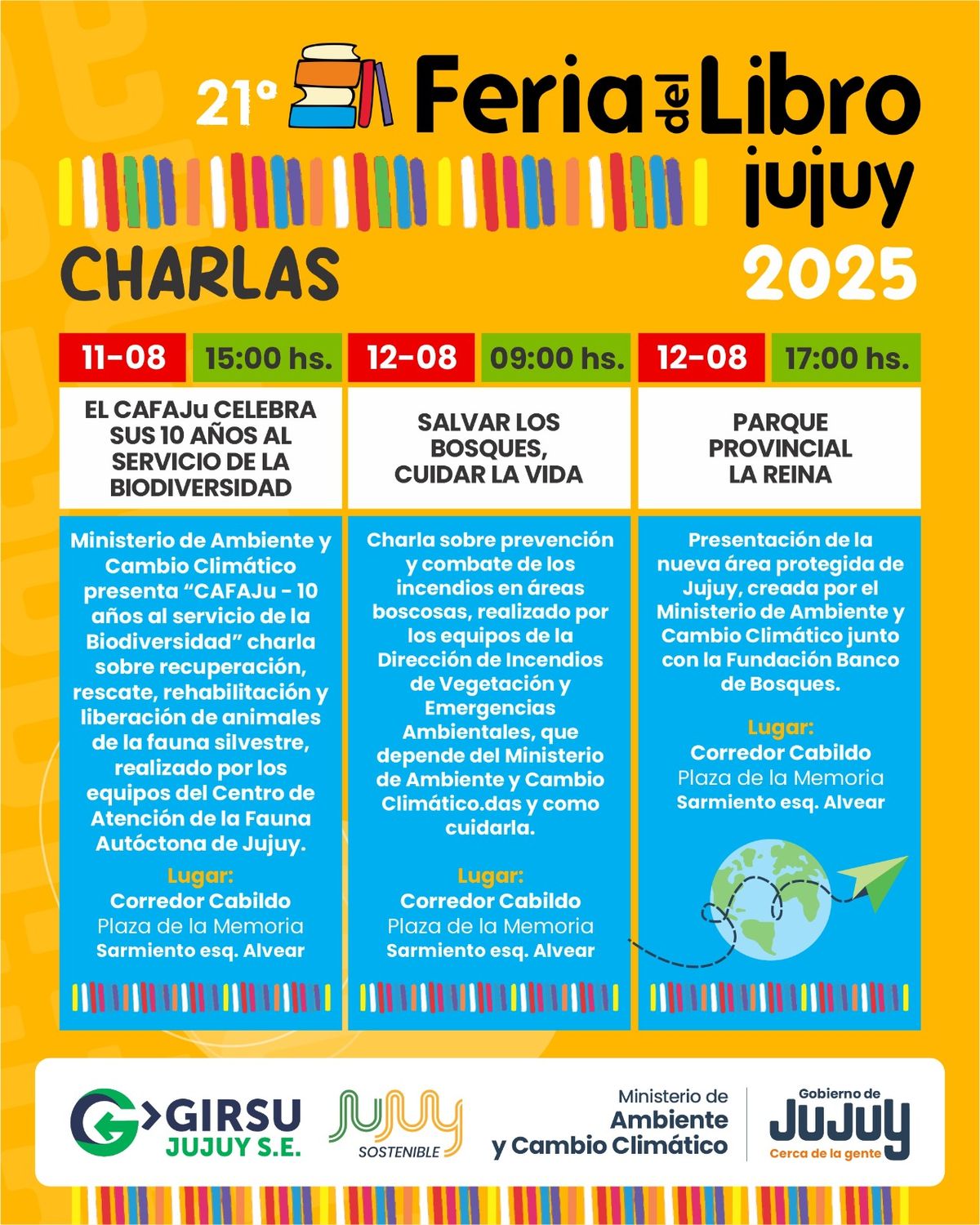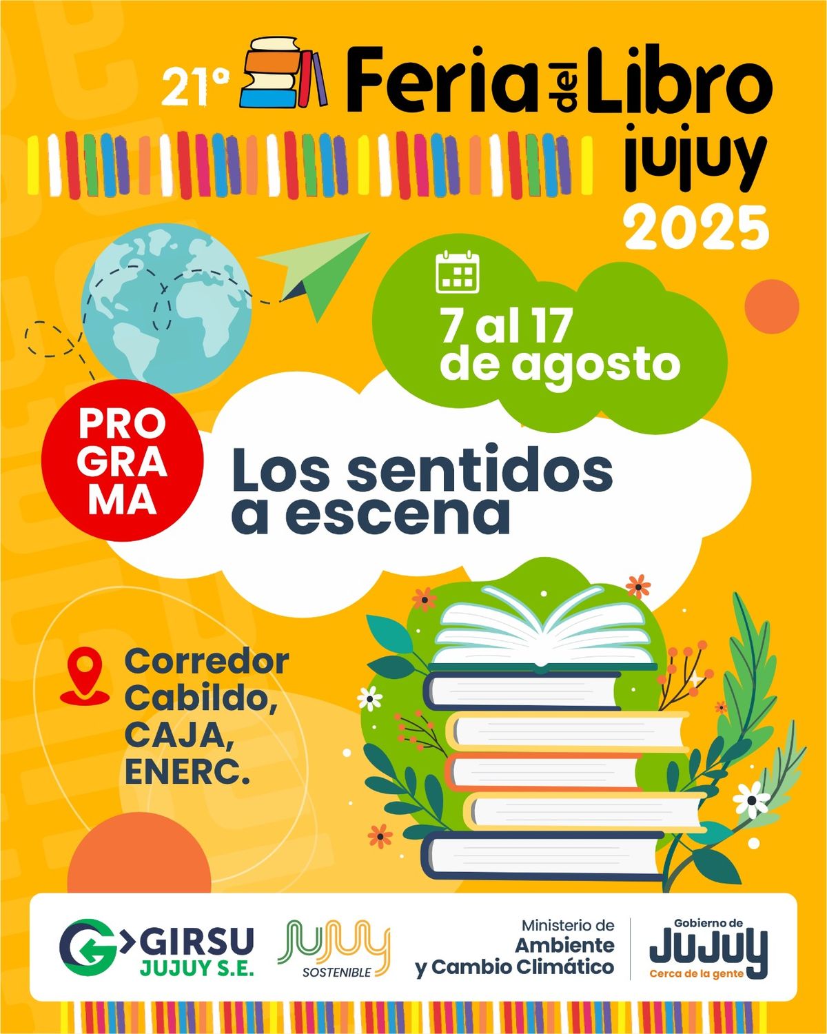 En el marco de la 21° edición de la Feria del Libro, que se realizará del 07 al 17 de agosto bajo el lema “Los sentidos a escena”, el Ministerio de Ambiente y Cambio Climático de la Provincia de Jujuy participará con actividades diseñadas para invitar al público en general a explorar y sentir el ambiente desde lo sensorial y lo emocional.