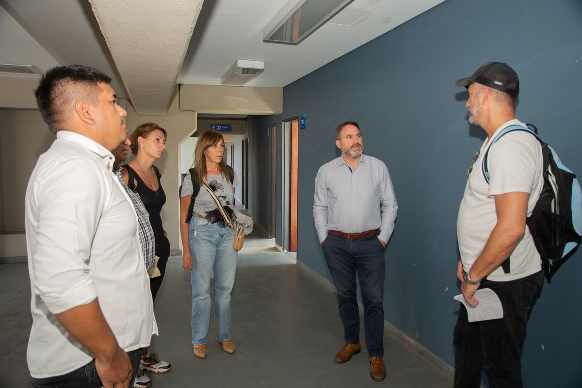 El grupo recorrió los vestuarios, el campo de juego, los sectores de tribuna (platea, preferencial y popular), también el sector de cabinas para la prensa y los palcos que serán asignados a las entradas de cortesía, funcionarios, directivos y sponsors.