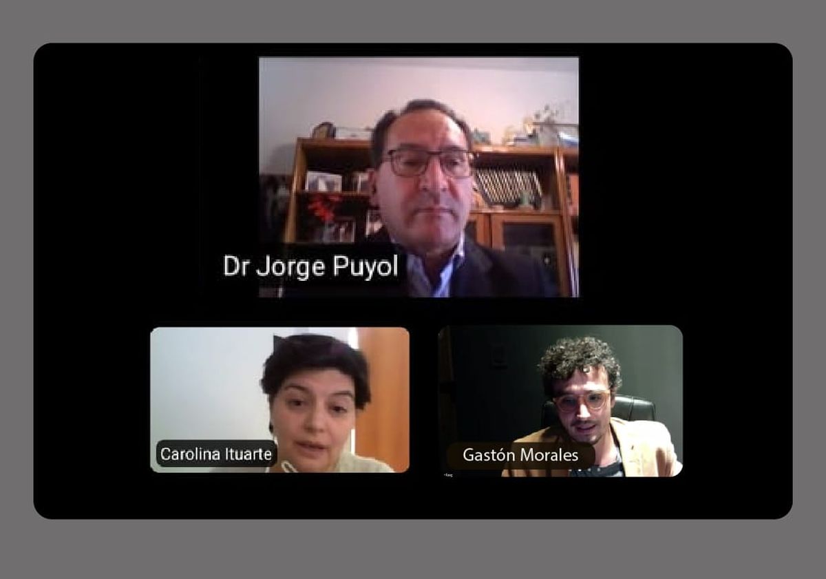 Participaron del encuentro virtual, el titular de la SAC, Dr. Jorge Ramón Puyol, el presidente de Cannava SE Dr. Gastón Morales y la doctora oncologa Carolina Ituarte titular del área de Investigación médica de Cannava SE.