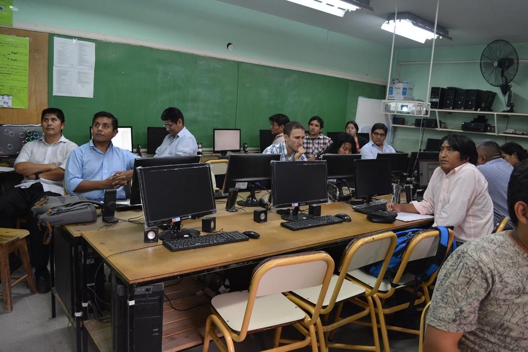 La capacitación se desarrolla en la Escuela Profesional Nº 8 Sarmiento, con la participación de docentes seleccionados de diferentes regiones de la Provincia.