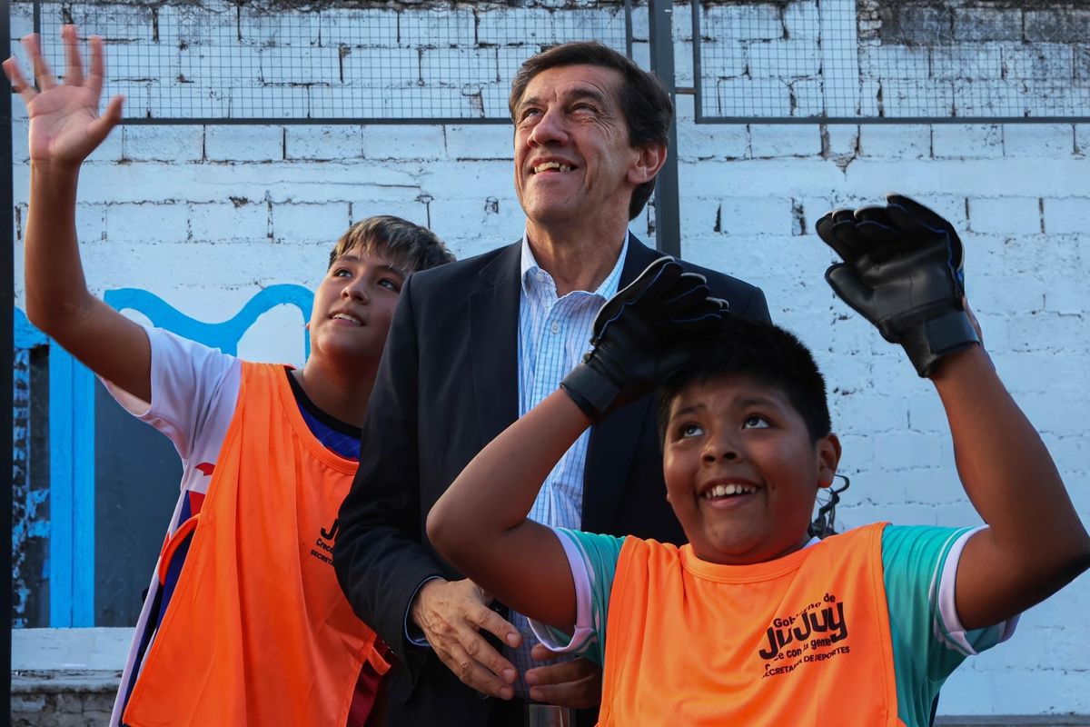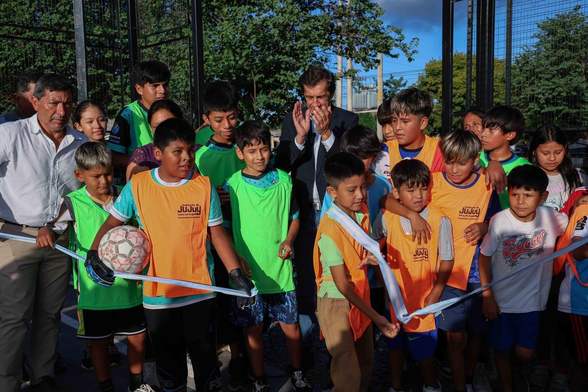 El gobernador Carlos Sadir inauguró las obras de mejora, renovación y reacondicionamiento del polideportivo del barrio 1° de Mayo en El Carmen. Con niños, vecinos y autoridades locales, el mandatario participó del significativo acto para ese sector de la ciudad.