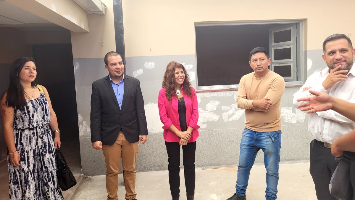 La ministra Alejandra Martínez junto al Secretario de Protección a las Infancias, Agustín Garlatti, el director Provincial de Protección Integral de Niños, Niñas y Adolescentes, Maximiliano Danert, la directora de los Dispositivos de Cuidado, Yamila Gutiérrez y el presidente den Centro Vecinal del barrio San Cayetano, Francisco Huanco recorrieron las refacciones que se están llevando adelante en el CDI “Grillito” que se inaugurará próximamente.