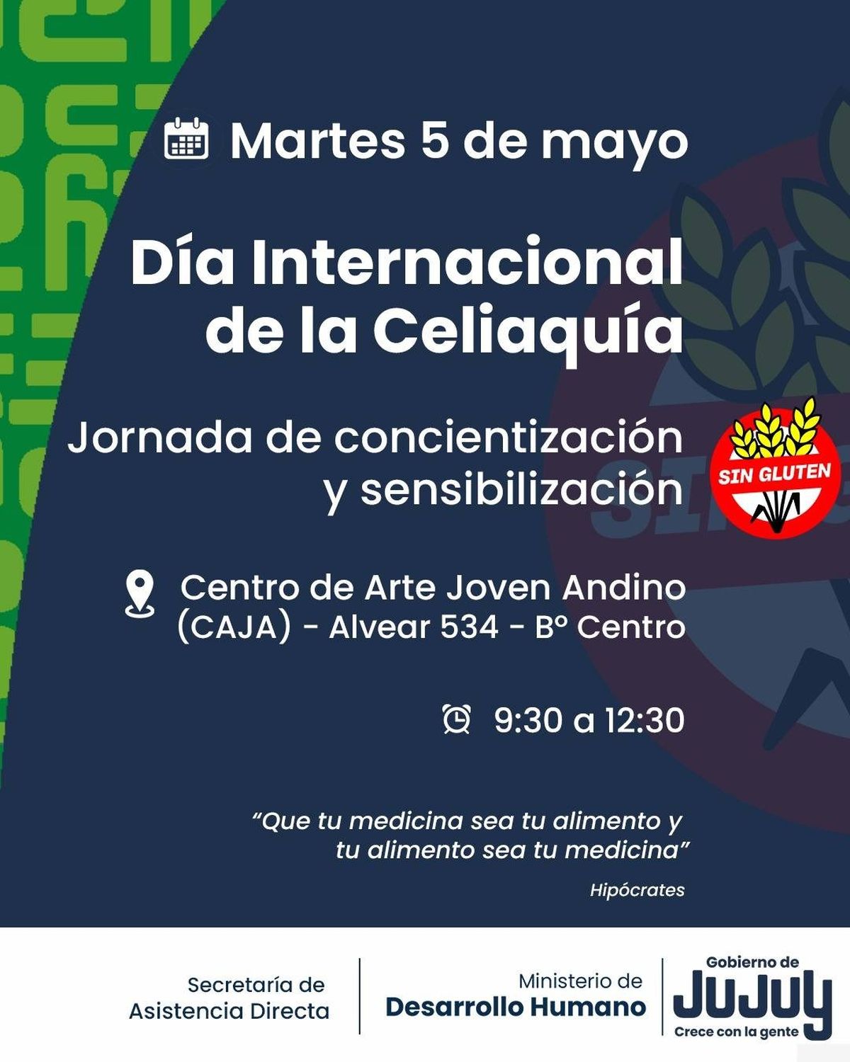 Con motivo de conmemorar el “Día Internacional de la Celiaquía”, el Ministerio de Desarrollo Humano, a través de la Secretaría de Asistencia Directa invita a la comunidad a participar de una jornada informativa y de concientización destinada a promover el conocimiento sobre esta condición y el acceso a una alimentación segura.