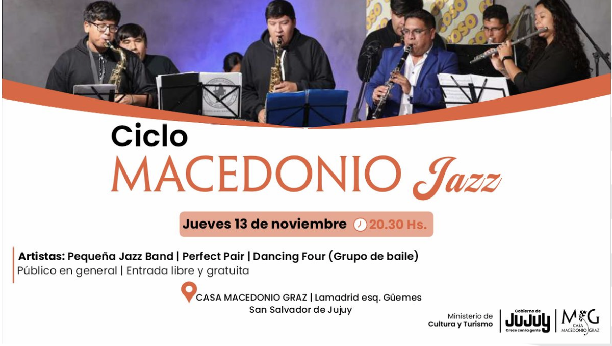 Casa Macedonio Graz, a través del Ministerio de Cultura y Turismo de Jujuy, continúa apostando a los ciclos culturales como forma de acercar el arte a la comunidad. El Ciclo Macedonio Jazz se ha convertido en una cita obligada para quienes disfrutan de este género musical en la capital.