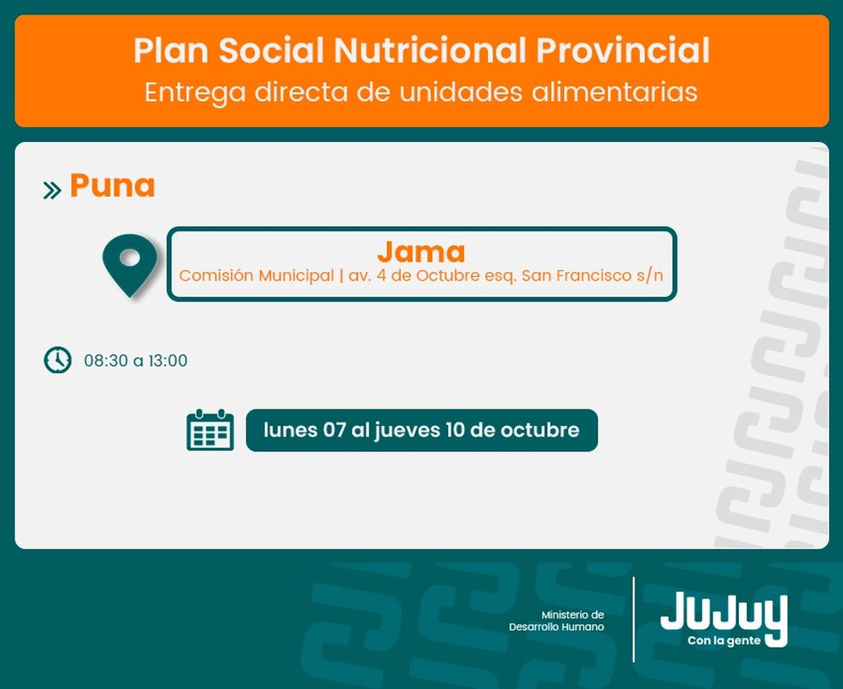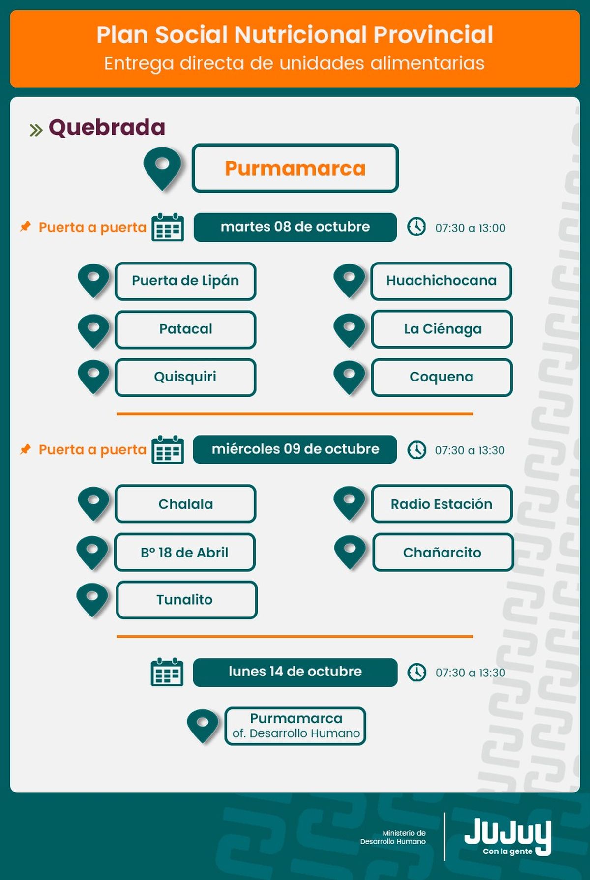 Lunes 14 de octubre, en el pueblo Purmamarca, en la Oficina de Desarrollo Humano de la Municipalidad, ubicada en Belgrano s/n, en el horario de 07:30 a 13:30.