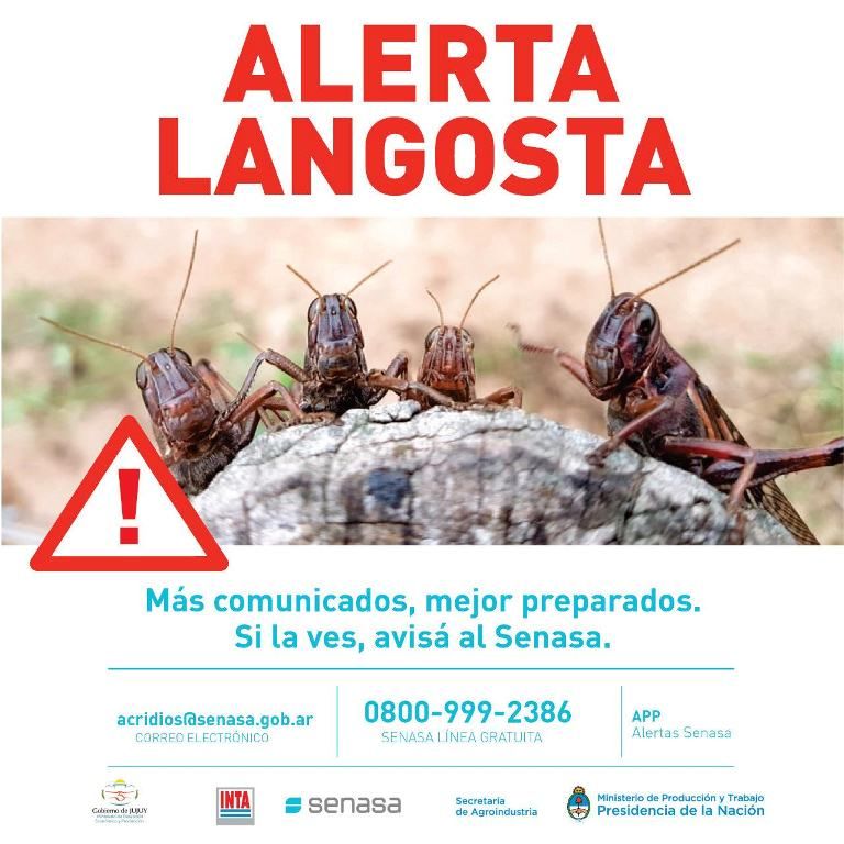 También, comunicaron a la comunidad en general que si ven alguna especie de langosta en sus cultivos que se comuniquen al 0800-999-2386 y denuncien su presencia.