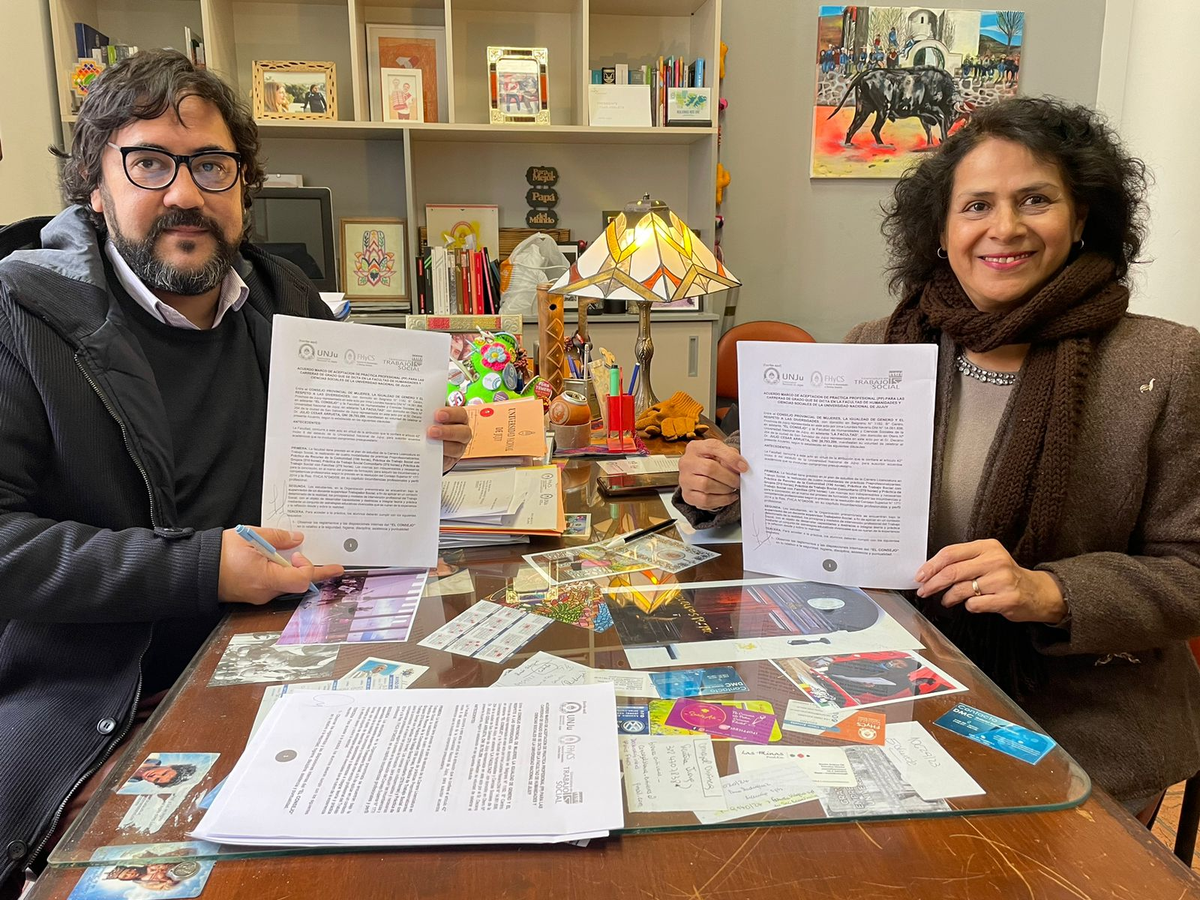 En la Facultad de Humanidades y Ciencias Sociales de la Universidad Nacional de Jujuy (UNJu) se llevó a cabo la firma de un convenio con el Decano de esa casa de altos estudios, César Arrueta y la presidenta del Consejo Provincial de Mujeres, la Igualdad de Género y el respeto a las Diversidades, Lourdes Navarro.