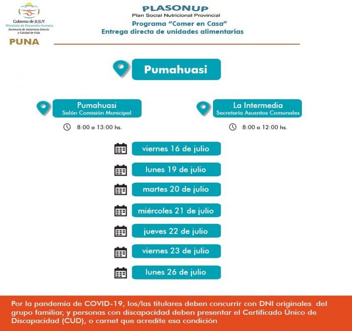 -En Pumahuasi, se concretará los días viernes 16, lunes 19, martes 20, miércoles 21, jueves 22, viernes 23 y lunes 26 de julio, de la siguiente forma: