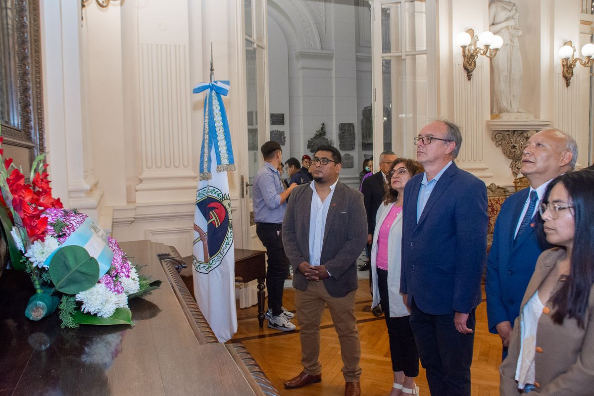 En primer término, se procedió al saludo protocolar por parte de las autoridades provinciales, para luego colocar una ofrenda floral al pie de la urna que atesora la Bandera Nacional de Nuestra Libertad Civil.