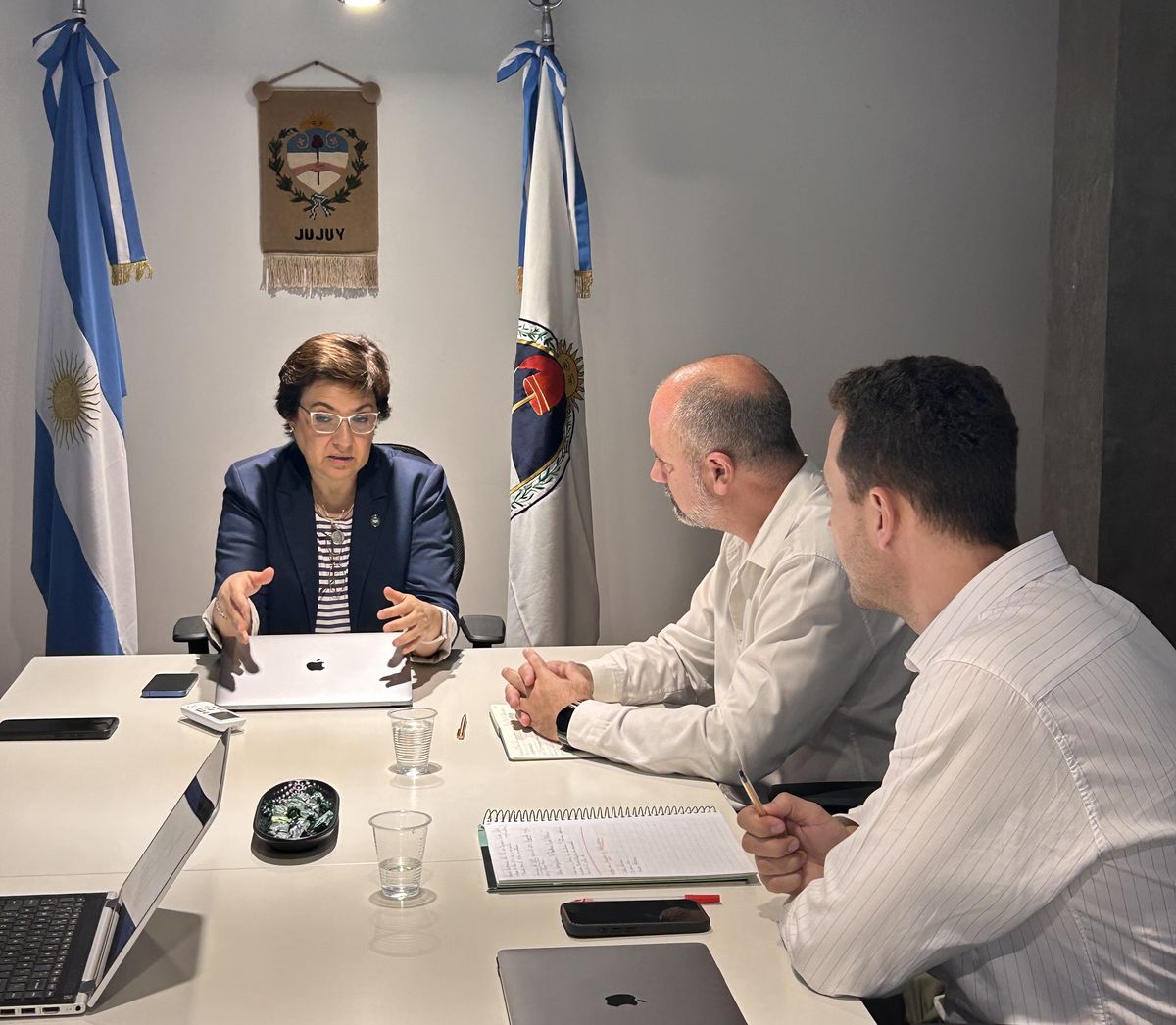 La ministra de Planificación Estratégica y Modernización, Isolda Calsina, recibió al ministro de Minería, José Gómez, y al secretario de Minería e Hidrocarburos, Pablo Bergese, en una reunión clave para trazar una agenda de trabajo conjunta centrada en la simplificación y digitalización de trámites y expedientes, con el propósito de favorecer las inversiones y generación de empleo.