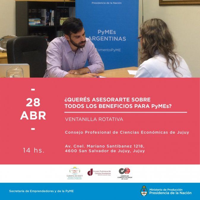 Estos turnos, que tendrán una duración de 15 minutos, serán espacios puntuales para cada uno de los solicitantes y se llevarán a cabo el día viernes 28 de abril, comenzando la atención del público empresarial a partir de las 14:00 hs. La actividad tendrá lugar en la antesala del Consejo Profesional de Ciencias Económicas, ubicado en calle Av. Cnel. Mariano Santibañez 1218, de nuestra ciudad capital.