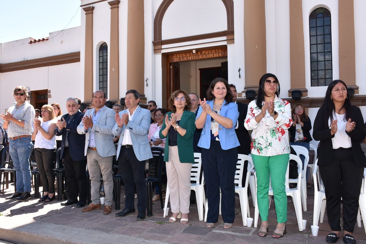 La ministra encabezó el acto en la plaza central junto al intendente Víctor González y la directora de la escuela anfitriona, Patricia Chalabe.