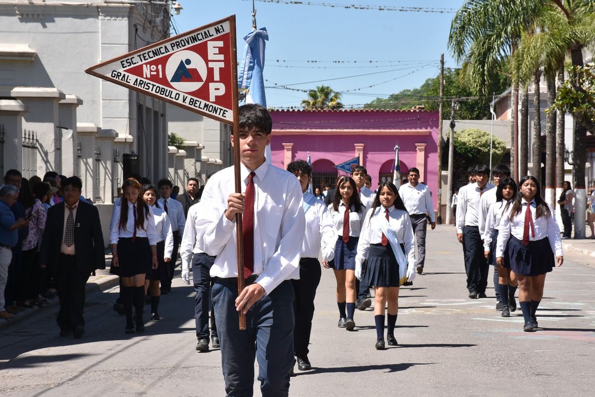 A primera hora se cumplió la recepción de delegaciones en instalaciones de la EET N°1, donde se inauguró una exposición de trabajos de todas las especialidades; y luego todos se trasladaron a la plaza central.
