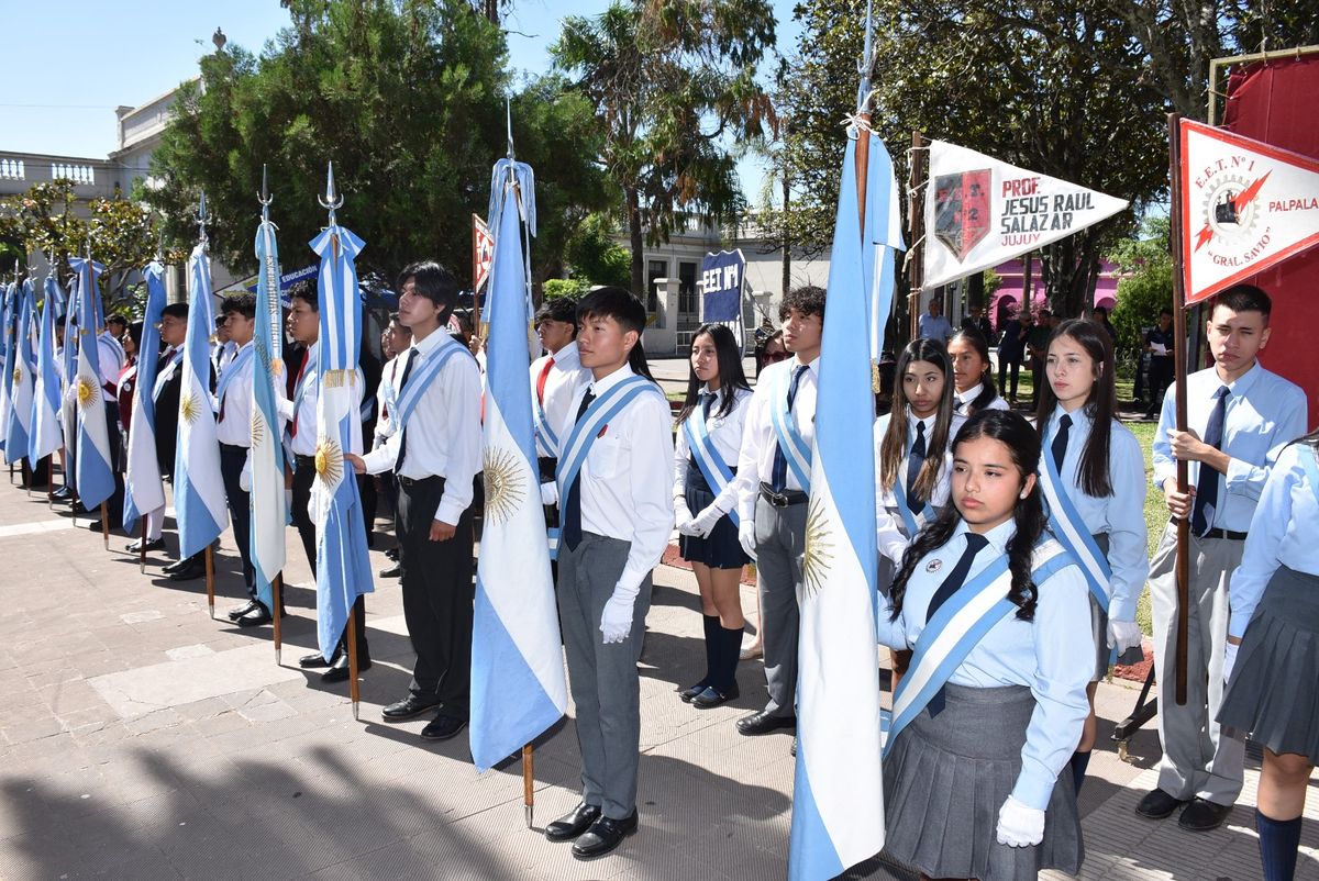 Ante abanderados de numerosas escuelas técnicas hubo izamiento de la Enseña Nacional, minuto de silencio,discursos alusivos y entrega de resoluciones declarando de interés la jornada, tanto del Concejo Deliberante como del Ministerio de Educación.