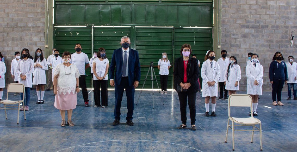 En el marco del regreso a clases presenciales de forma voluntaria, el gobernador Gerardo Morales participó del acto apertura en la Escuela 456 “Sargento Juan Bautista Cabral” del barrio Alto Comedero.