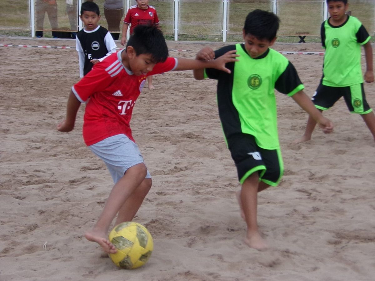 La Escuela de Fútbol Playa Mixto Infantil, a cargo de la Secretaria de Deportes, trabaja con los niños los días lunes, miércoles y viernes de 16:00 a 18:00 horas, en el poli deportivo, en la categoría 8 y 9 con los niños de 10 a 12 años, a cargo de la profesora Belén Mendoza, quien sostuvo que, “es un deporte que atrae muchos a los niños, juegan tres tiempos de ocho minutos, con un descanso de cinco.
