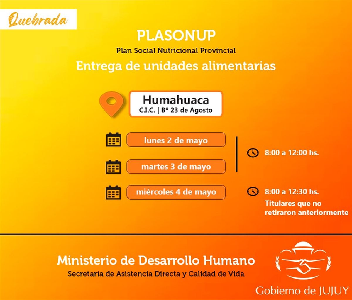 -Miércoles 4 de mayo, para remanentes - titulares que no retiraron anteriormente, en el horario de 8:00 a 12:30.