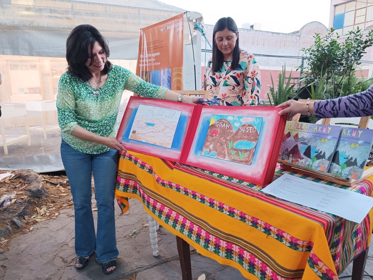Este martes, 22 de agosto, en un sector especial de la Feria del Libro Jujuy, conocido como el sector Tierra, Lorena Montes junto a Paula Cardozo, coordinadoras de la Modalidad de Educación Intercultural Bilingüe, Rural y Artística, respectivamente, realizaron la presentación del libro “Willanakuy”, que contiene cuatro cuentos: el Gran Susto, Don Omar, el Zorro, la Piedra de la Sirena y la Llama de Plata, que traen la recuperación de la oralidad de la zona de Tambillos del departamento de Cochinoca.