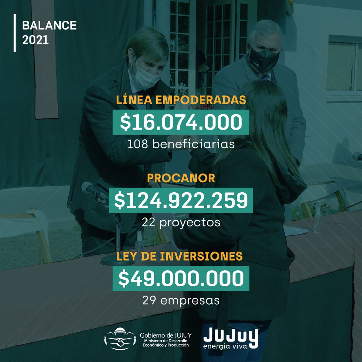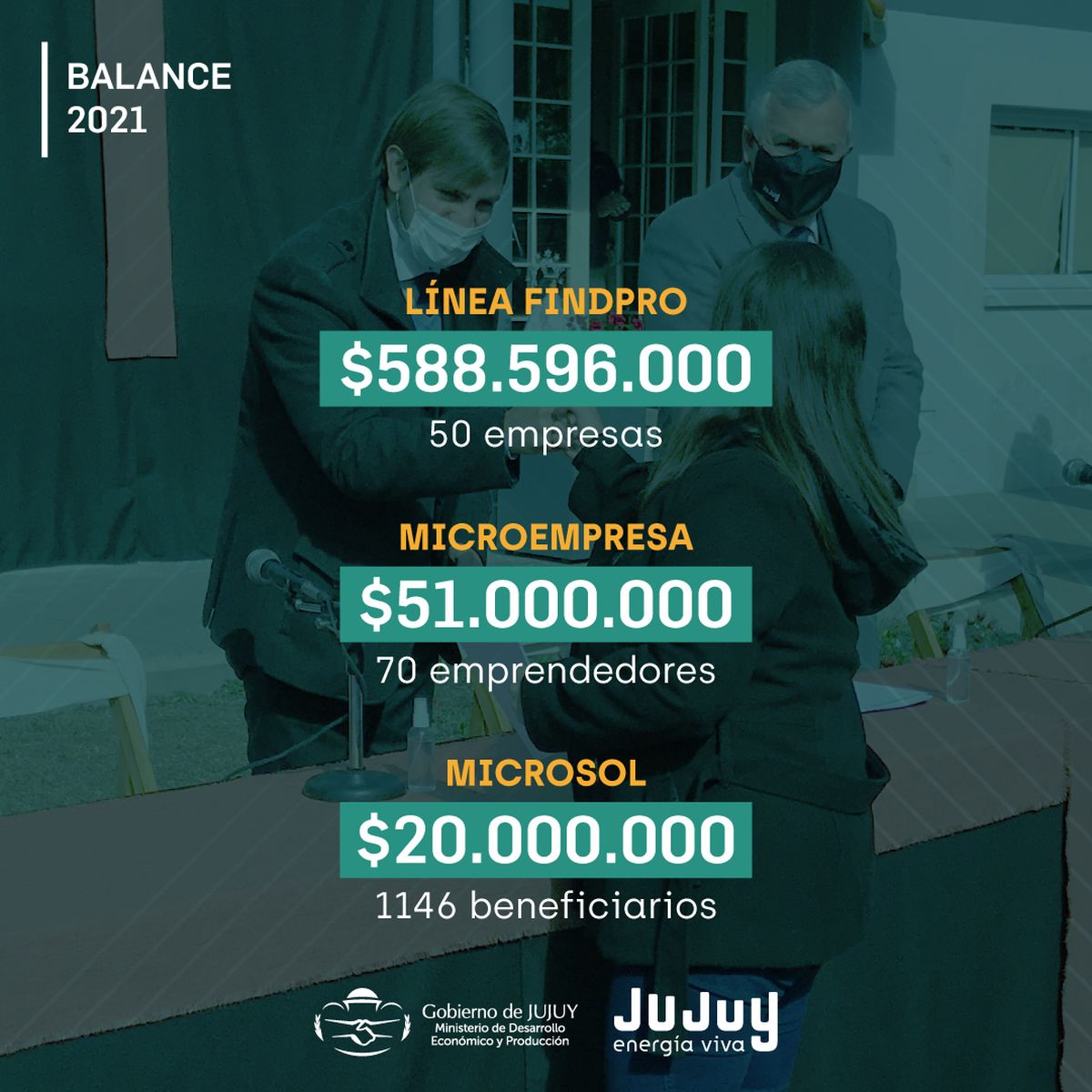 El Ministerio de Desarrollo Económico y Producción de Jujuy entregó durante el 2021 casi 8 millones de dólares como parte de las distintas líneas de financiamiento de impulso al desarrollo y la trasformación de la matriz productiva de Jujuy.
