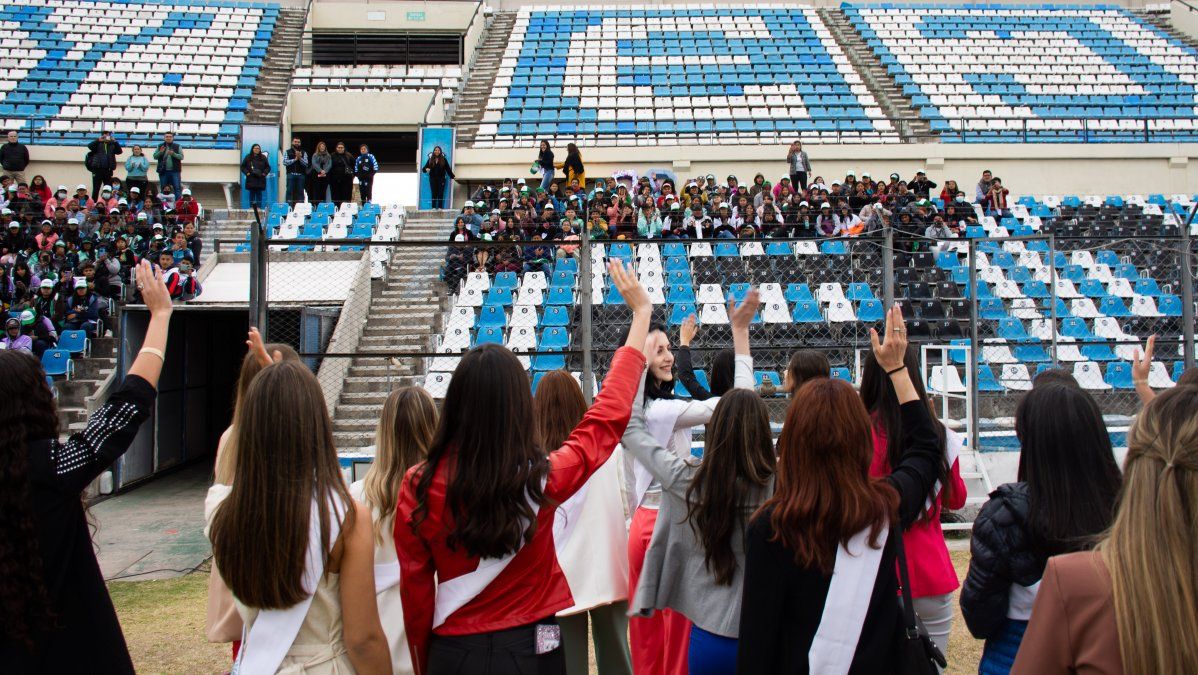 En el estadio también tuvieron la posibilidad de saludar a las distintas reinas provinciales que llegaron a Jujuy para participar de la elección nacional.