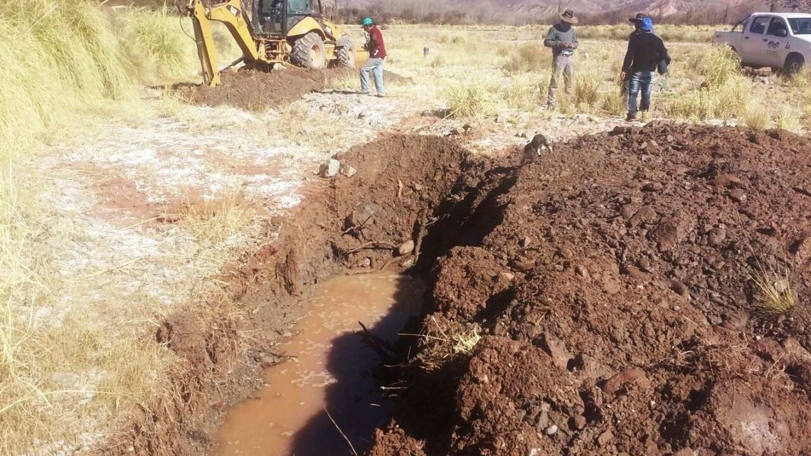 Con maquinarias de la Dirección Recursos Hídricos, se ejecuta la construcción del canal y toma de riego a 16 km de la Ruta Nacional N°9, en Juella – Tilcara.