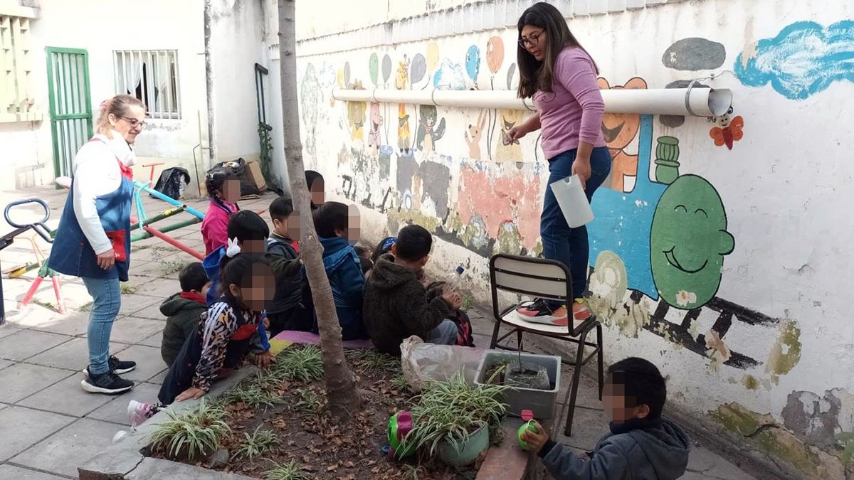 En el marco de la iniciativa “Niñas y Niños Abrazando la Pachamama”, alumnas, alumnos y docentes de la sala de 4 años del turno tarde del Jardín de Infantes Nucleado (JIN) Nº 17, escuela Nº 418 Eva Perón, participaron del taller de huerta agroecológica, organizado por el Ministerio de Desarrollo Humano, a través de la Secretaría de Asistencia Directa y Calidad de Vida.