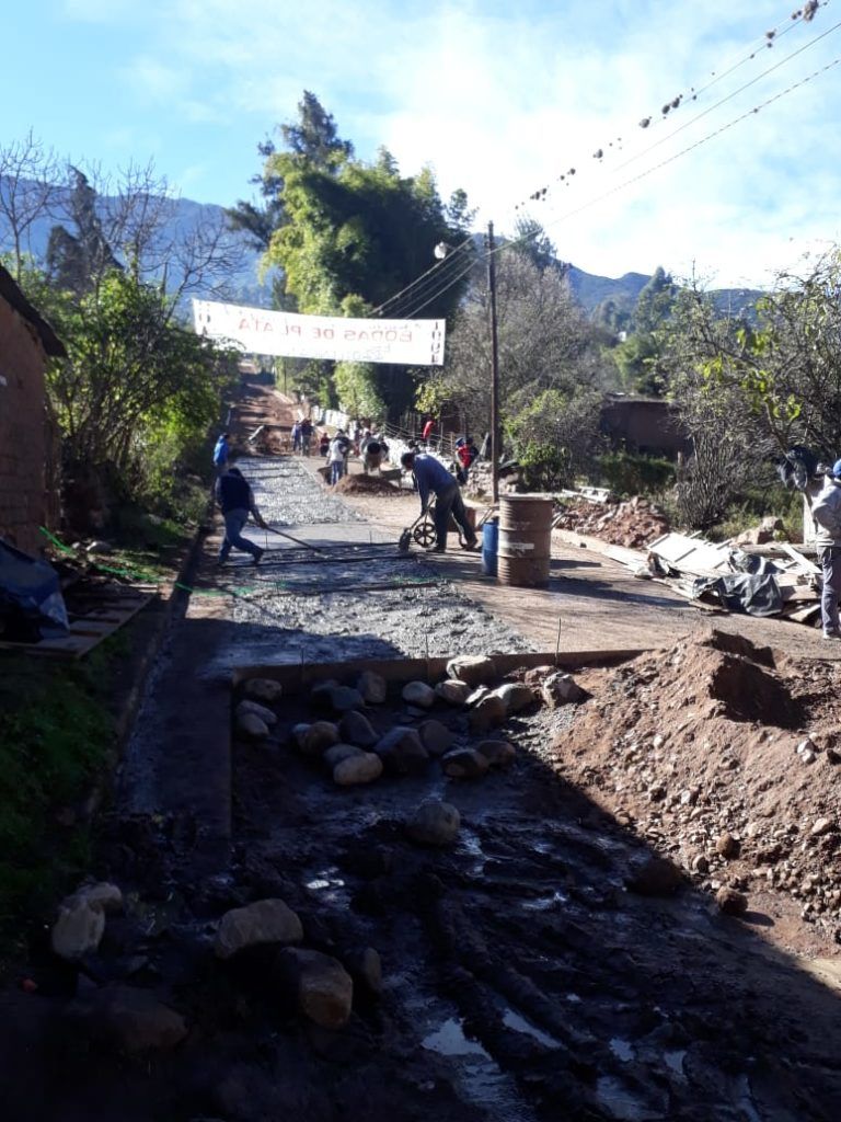 En Valle Grande, la construcción de pavimento y cordón cuneta sobre la calle San Martin, avanzó ya dos cuadradas. En este sector, el MISPTyV proporcionó cemento en un valor total de $250.000.