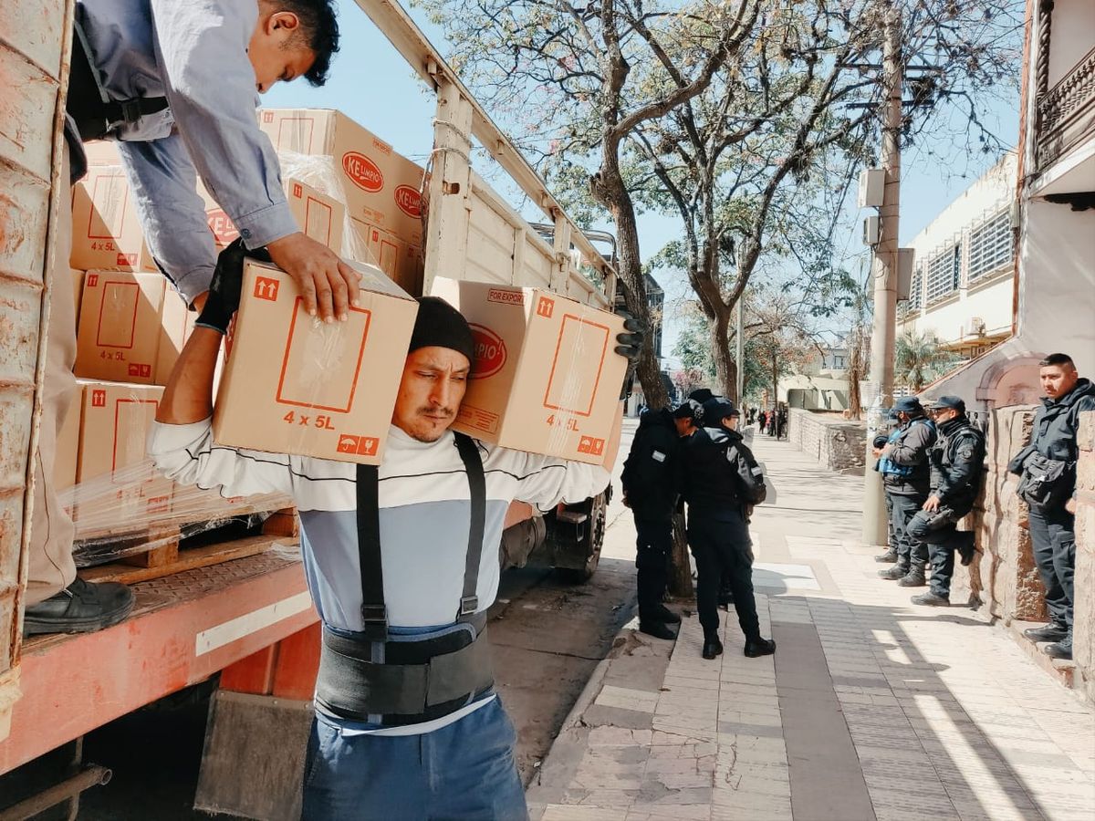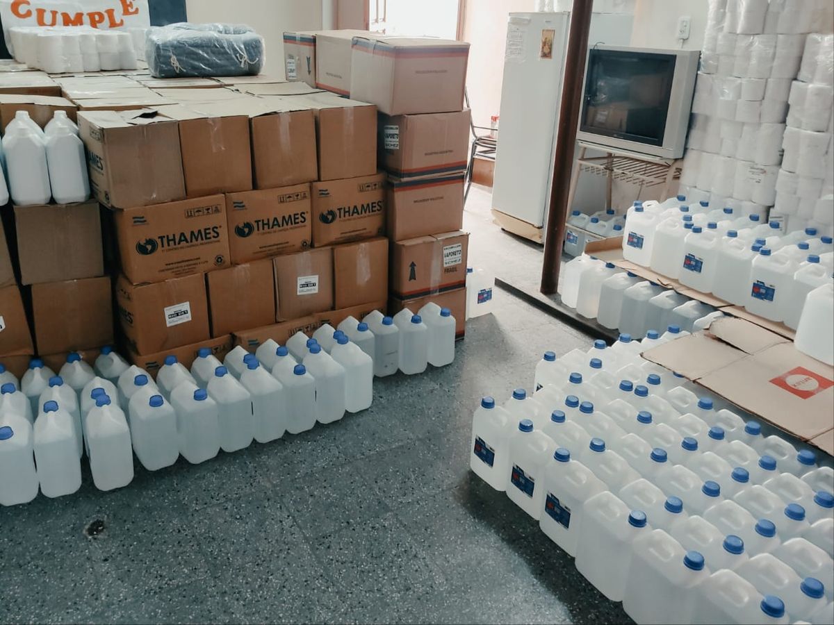 Asimismo, explicó y enumeró los insumos de higiene y bioseguridad, expresando que “es un refuerzo, que consta de alcoholes en gel e hidrolizados, lavandina, detergente, trapos de piso y rejillas, secapatios, bolsas de residuos, guantes de goma, escobillones, jabones, rollos de cocina, papeles higiénicos, lanas de acero, esponjas, limpiadores cremosos, franelas, repasadores, tizas blancas y de color, afiches preventivos de COVID, unidades pulverizadoras, máscaras faciales y guantes de latex”.