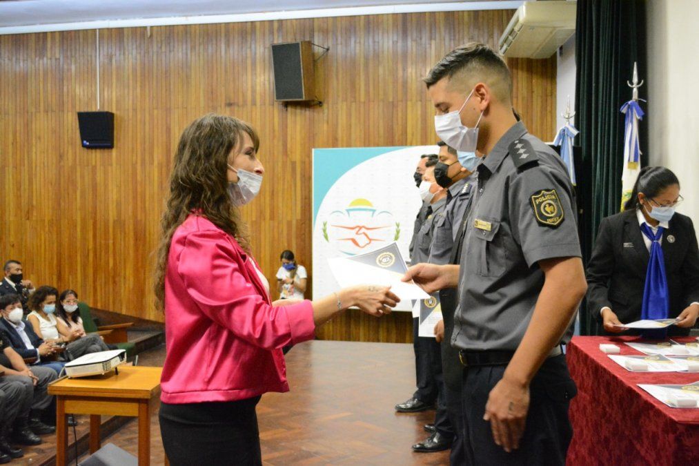 Además, acompañaron la Diputada Provincial, Gabriela Burgos; el Subjefe de la Policía de la Provincia, Comisario General Sergio Carrizo; el Vicerrector del IUPS, Comisario Mayor Joaquín Carrillo; el Capellán del Servicio Penitenciario, Aldo Ramos; familiares, entre otros.