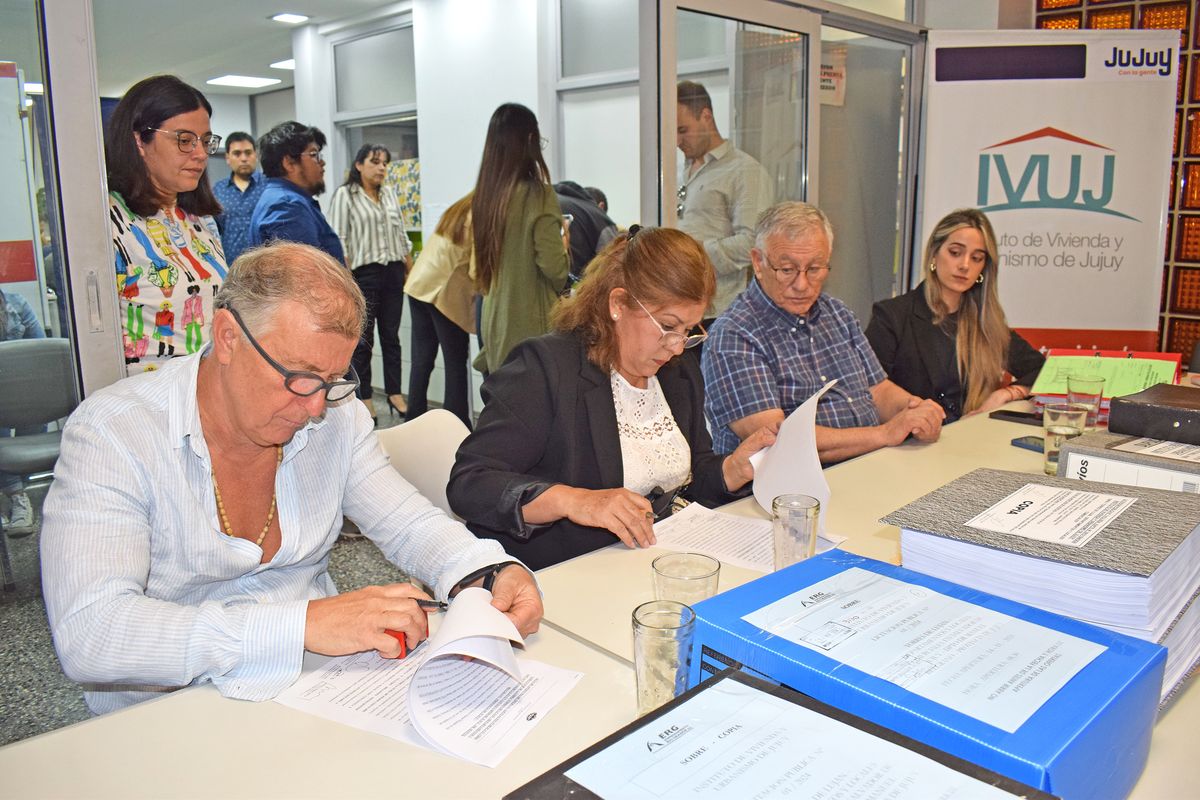 En instalaciones del Instituto de Vivienda y Urbanismo de Jujuy (IVUJ), estuvo presente el Directorio del IVUJ, integrado por su presidente, José Luis Paiquez; los vocales técnico y social, Sergio Soria y Marcelo García, respectivamente; la escribana Carla Jimena Ellemberg de Escribanía de Gobierno; Ángel Alberto Lamas y Magdalena María Rivas, en representación de Fiscalía de Estado; Cristian Ponce, a cargo de la Coordinación Jurídica del organismo; Andrea Pareja, jefa del departamento Diseño; personal del IVUJ; y representantes de las empresas oferentes.