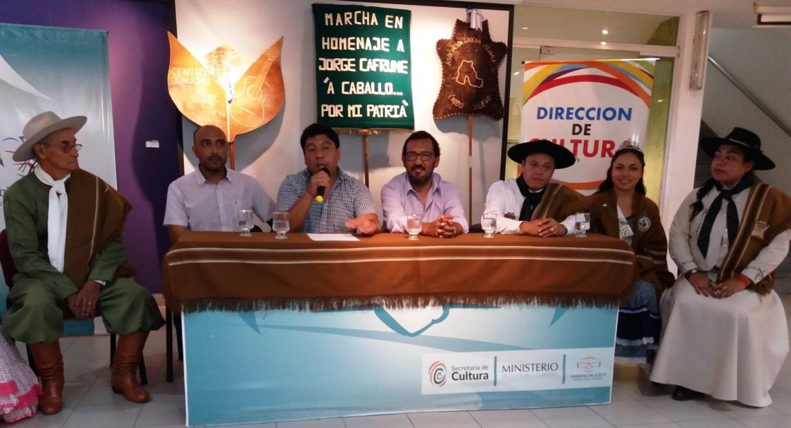 El Secretario de Cultura, Luis Medina Zar junto al Intendente de El Carmen, Adrian Mendieta y al presidente de la Asociación Gaucha “Exodo Jujeño”, Aldo Ortíz realizó la presentación de los actos previstos al cumplirse 41° Aniversario del Fallecimiento de Jorge Cafrune. Entre las actividades más relevantes se destaca la XXXI Marcha a caballo por Mi Patria, desde la Capital a la localidad de El Carmen y el cierre con el 14° Festival en su homenaje.