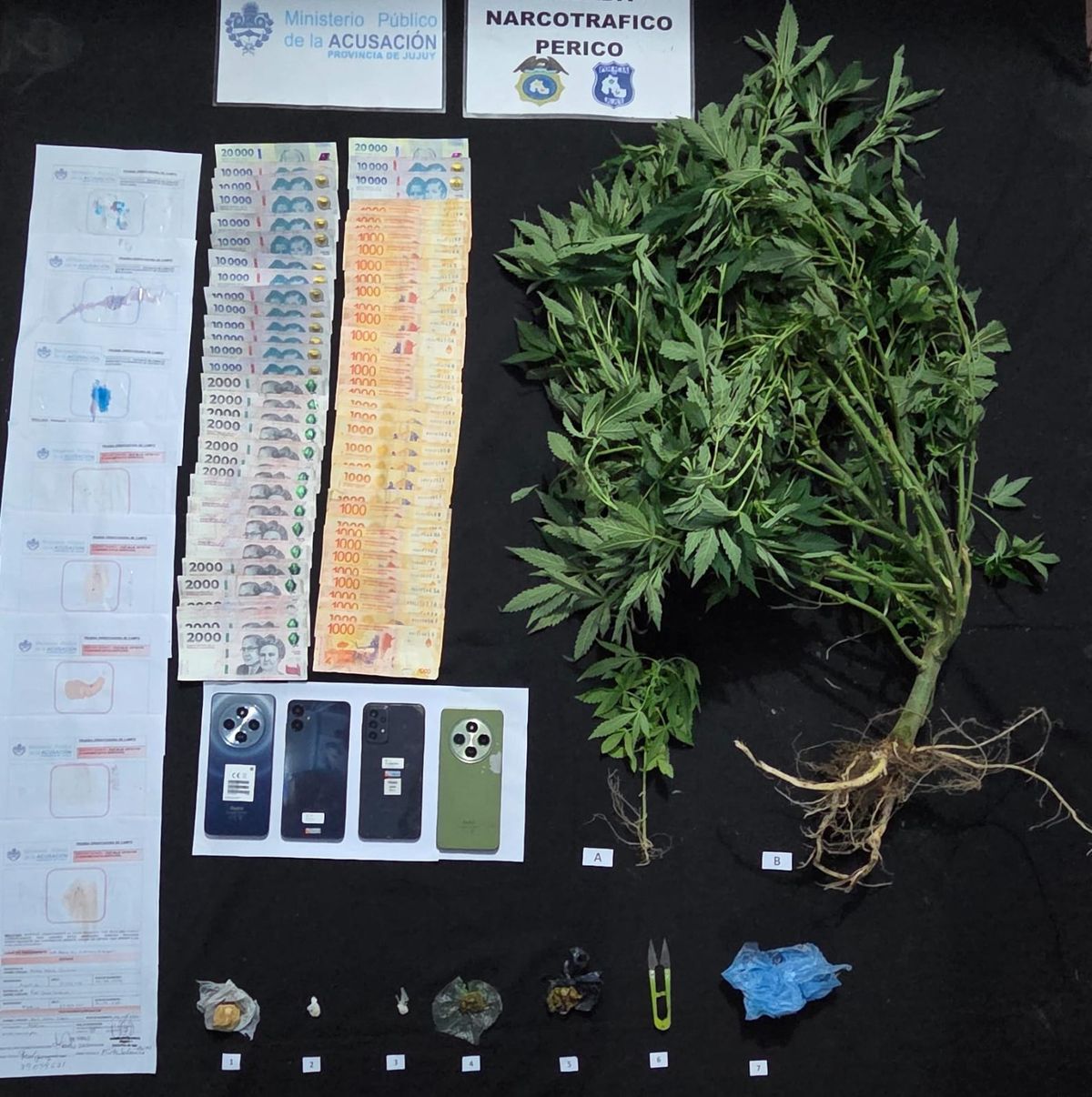 Se incautó pasta base, una balanza de precisión, recortes de polietileno para el fraccionamiento, 9 teléfonos celulares y la suma de más de $300.000 en efectivo.