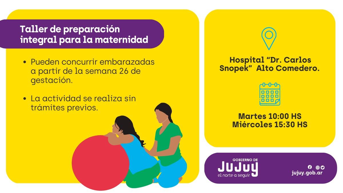 El Ministerio de Salud de Jujuy informó a la comunidad que se encuentra a disposición, de manera libre y gratuita, el Taller de Preparación Integral para la Maternidad (PIM) en el Hospital “Dr. Carlos Snopek” de Alto Comedero.