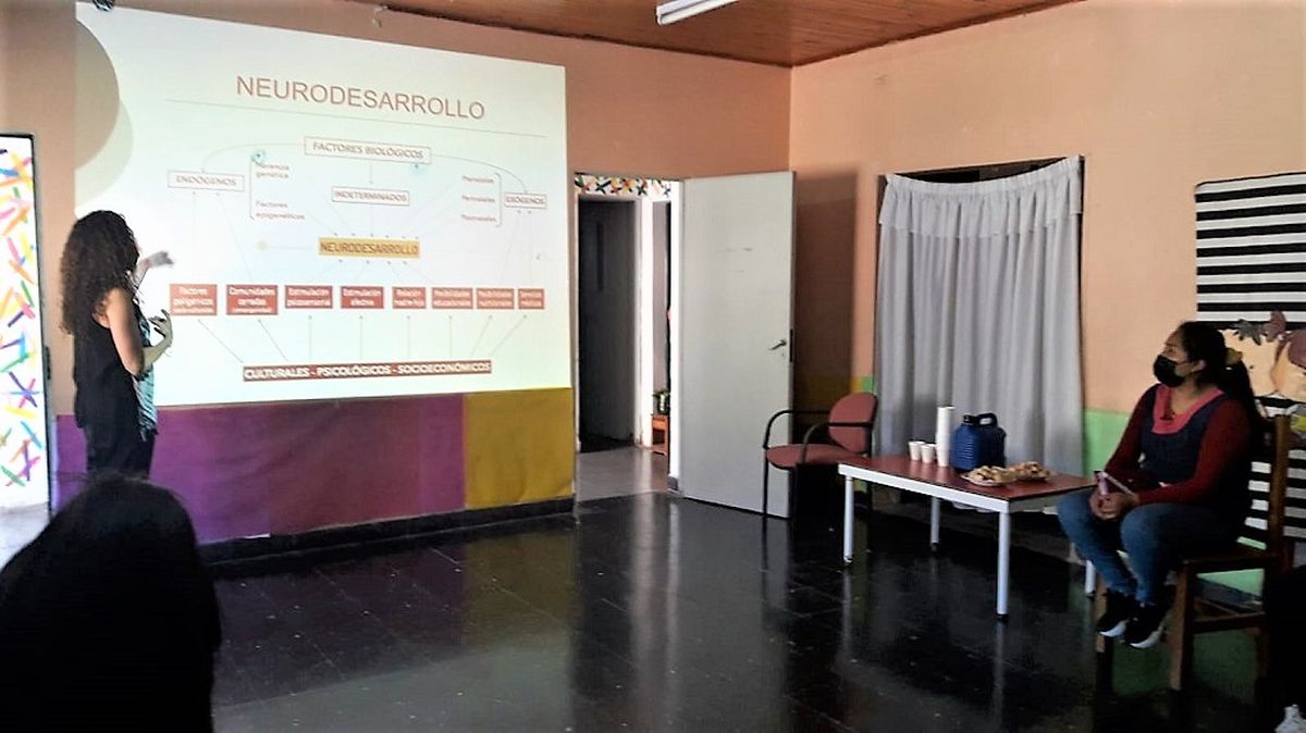 Asimismo, participó de la capacitación la Dra. Silvina Sánchez, Neurópediatra MP 2854, quien se refirió a las Enfermedades Poco Frecuentes Lipofuscinosis Neuronal Ceroidea tipo II (CLN2) y Mucopolisacaridosis y Neurodesarrollo en la primera infancia, donde el personal pudo dialogar y consultar dudas para poder aplicar los conocimientos en las tareas diarias y detectar dificultades para poder derivar a profesionales en ciertas situaciones para un diagnóstico certero y temprano con el fin de evitar el deterioro de la salud y mejorar calidad de vida de la niñez.