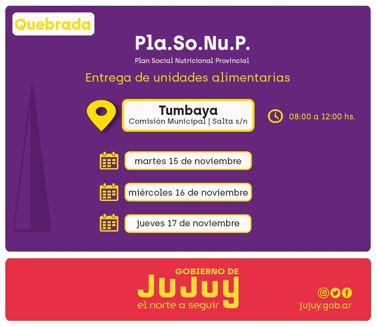 El operativo se planificó entre el equipo técnico del Plan Social Nutricional Provincial (Pla.So.Nu.P.) y localidades mencionadas, el cual se llevará a cabo según días y modalidades establecidas para cada lugar.