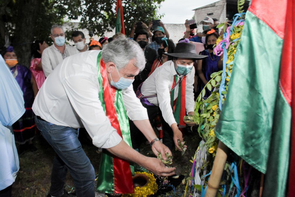 El mandatario señaló que con la entrega de elementos ceremoniales se posibilita a 40 comunidades que pertenecen a los departamentos de Santa Bárbara, Ledesma y San Pedro, para que puedan llevar adelante su arete guazú.