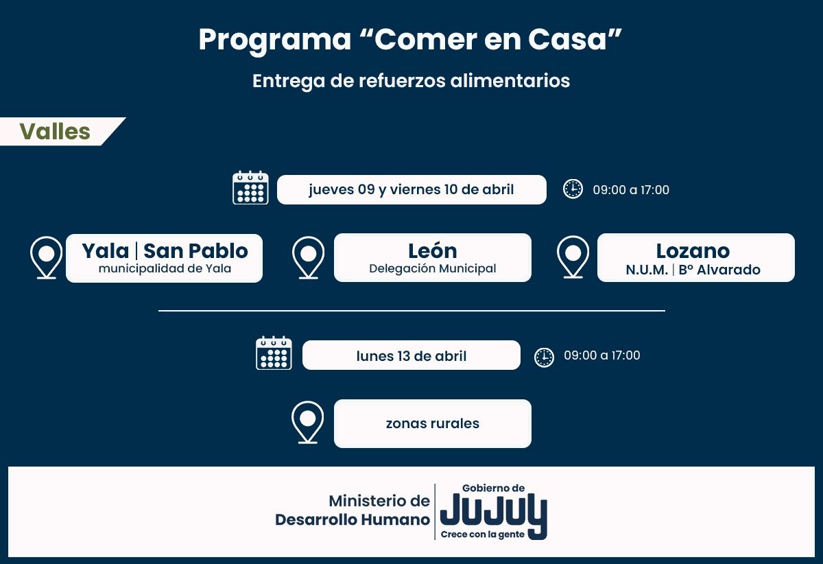 Yala en en oficinas de la Municipalidad (titulares de Yala y San Pablo de Reyes), de 09:00 a 17:00 hs. Mientras que en León se realizará en la Delegación Municipal y Lozano en el NUM Carlos Alvarado, de 09:00 a 17:00 hs. En tanto que en las zonas rurales la distribución se llevará a cabo el lunes 13 de abril.