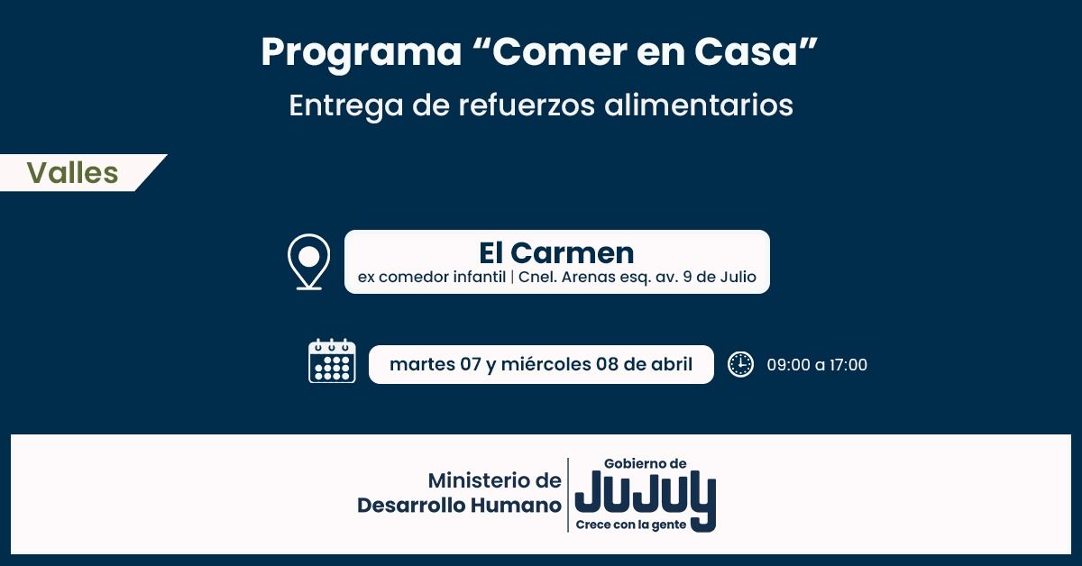 El Carmen: ex Comedor Infantil ubicado en calle Coronel Arenas esquina avenida 9 de Julio, de 9:00 a 17:00 hs.