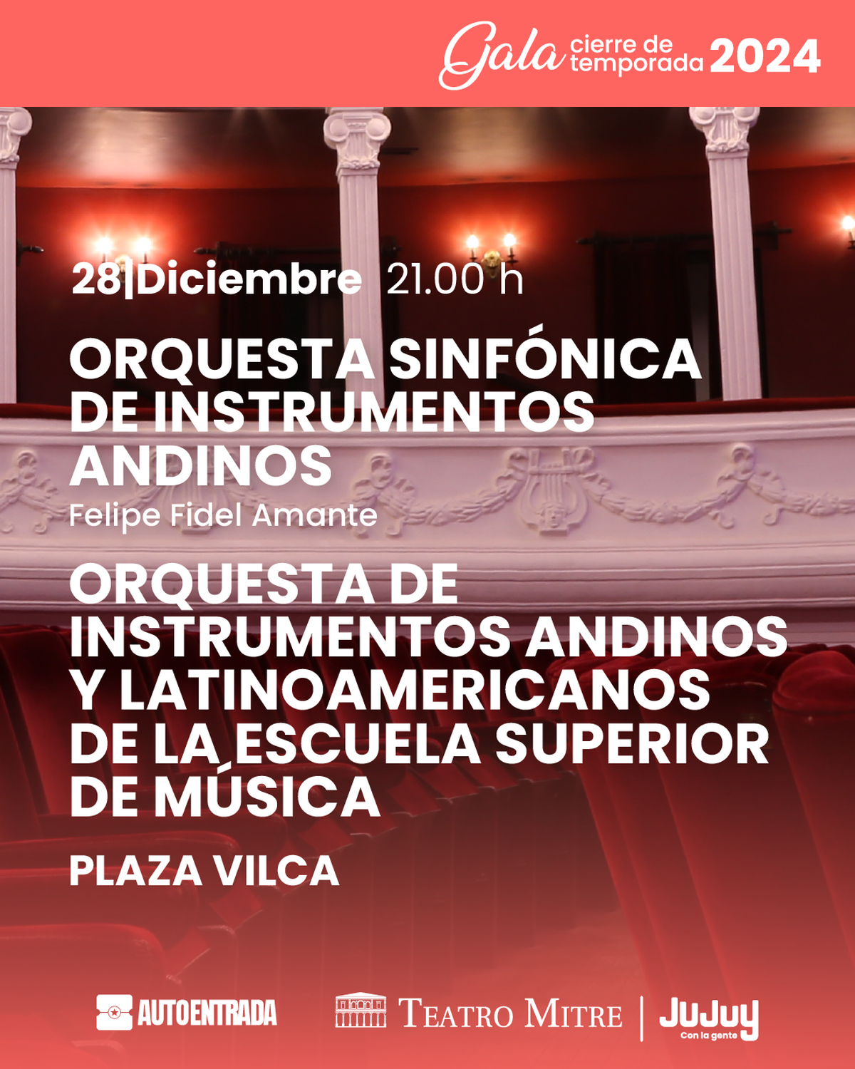 Hasta el lunes 30 de diciembre, el calendario de eventos propuestos para el cierre del año 2024, continúa con una serie de eventos musicales y artísticos que pueden ser consultados en www.agendaculturaljujuy.com