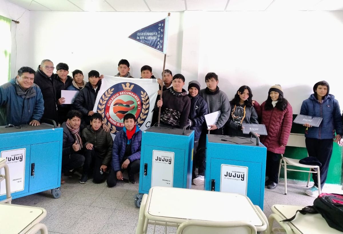 En el marco del Programa de Mejora del Acceso y la Calidad Educativa (PROMACE), financiado con la renta de la Planta de Energía Solar Cauchari, el Gobierno de Jujuy, a través del Ministerio de Educación, entregó 85 Aulas Digitales Móviles a instituciones educativas de nivel Secundario en las localidades de León, Tesorero, Lozano, Ocloyas, Reyes, Termas De Reyes, Yala, Valle Colorado, Pampichuela, San Francisco, Valle Grande, Libertador General San Martin, Bananal y Chalican, del 10 al 12 de julio.