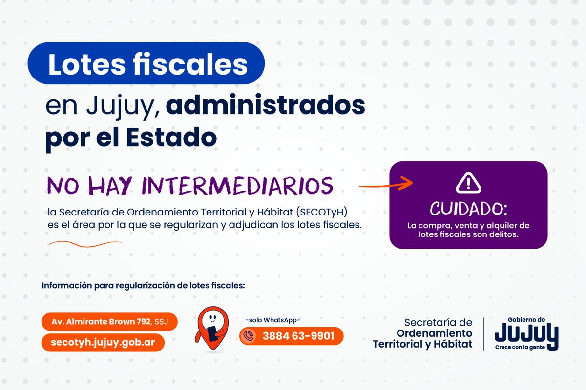 Para finalizar, el secretario de Ordenamiento Territorial y Hábitat, convocó a las familias que tengan consultas sobre la situación de sus lotes a “acercarse al Organismo para recibir asesoramiento y avanzar en su regularización, como también a informarse y avanzar en trámites tanto en nuestra página web, secotyh.jujuy.gob.ar, y mediante nuestro ChatBot, vía mensaje de texto de Whatsapp, al número 388-4639901 ”.