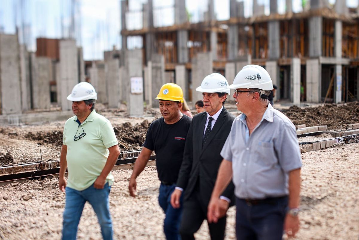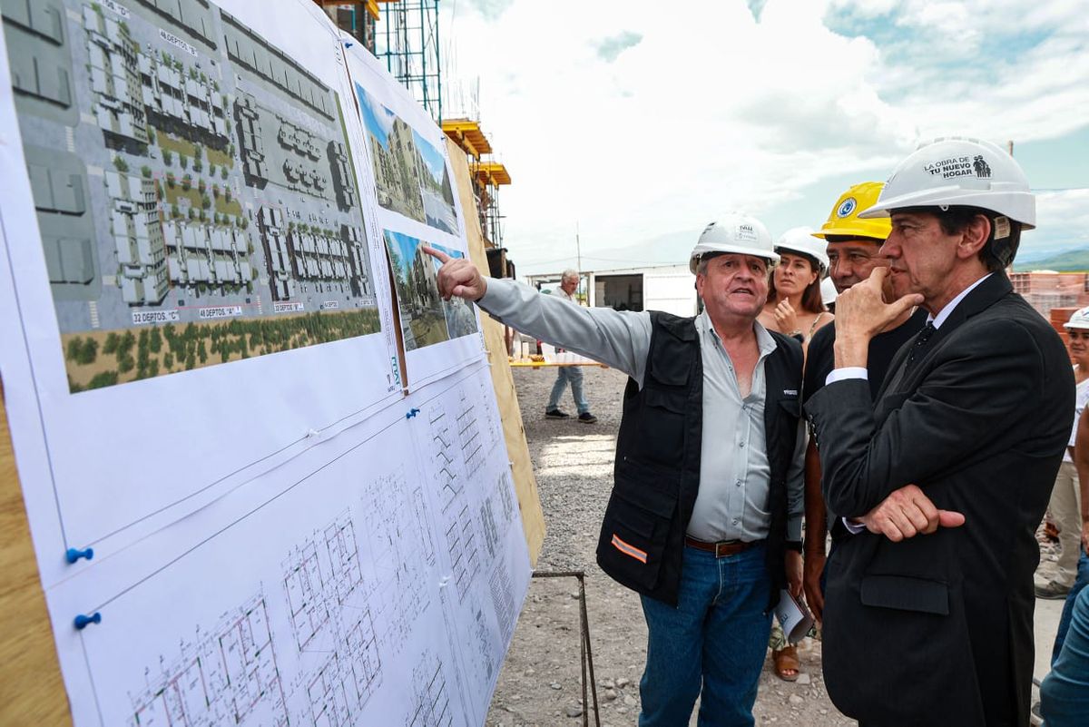 El gobernador Carlos Sadir recorrió el avance de la construcción de los 288 departamentos e infraestructura en el sector de las 150 Hectáreas del barrio Alto Comedero. Se trata de una operatoria del Instituto de Vivienda y Urbanismo de Jujuy (IVUJ) que es edificada de manera articulada entre los sectores público y privado.