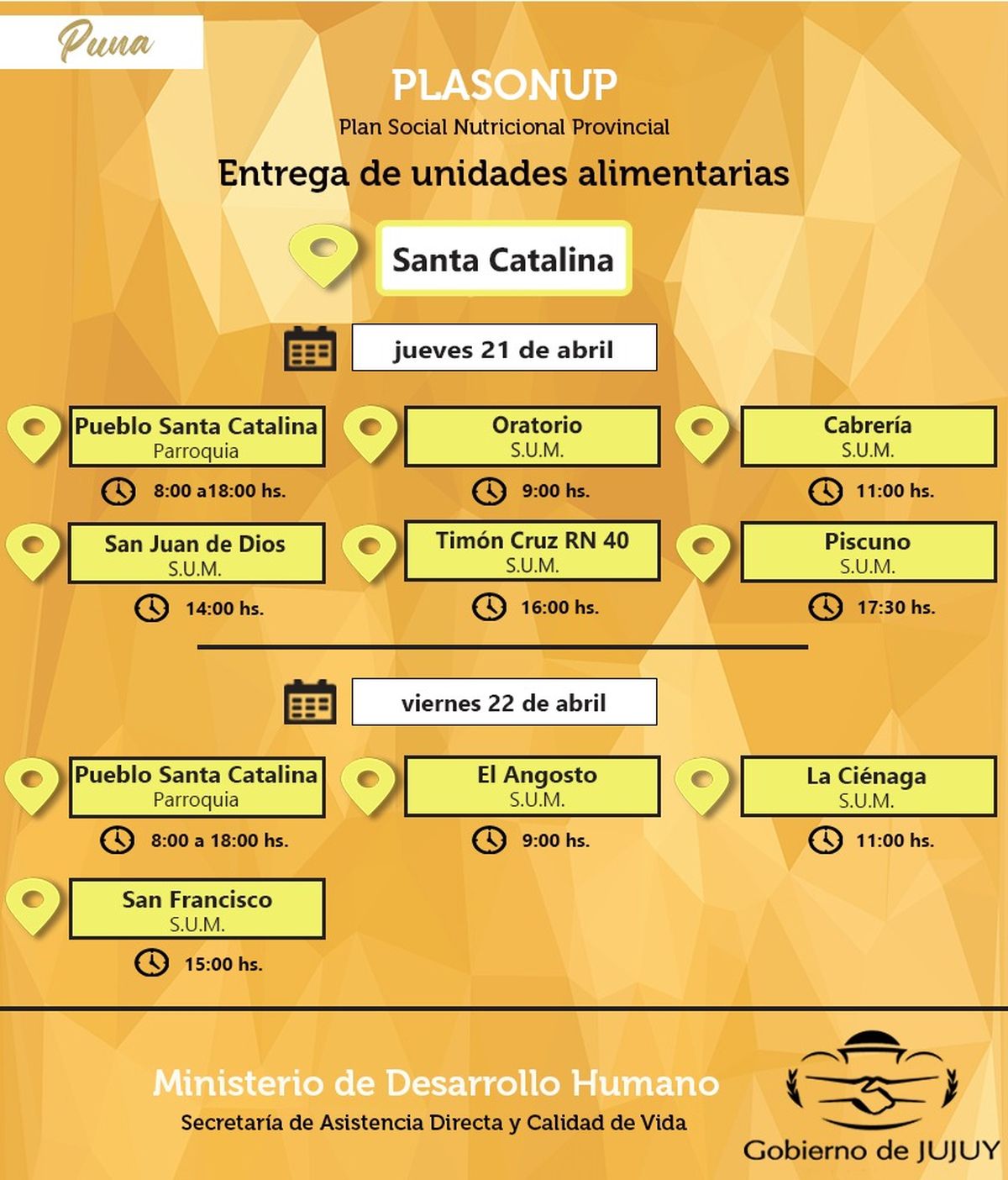 -Jueves 21 y viernes 22 de abril en el pueblo Santa Catalina, en la Parroquia del lugar, en el horario de 8:00 a 18:00.