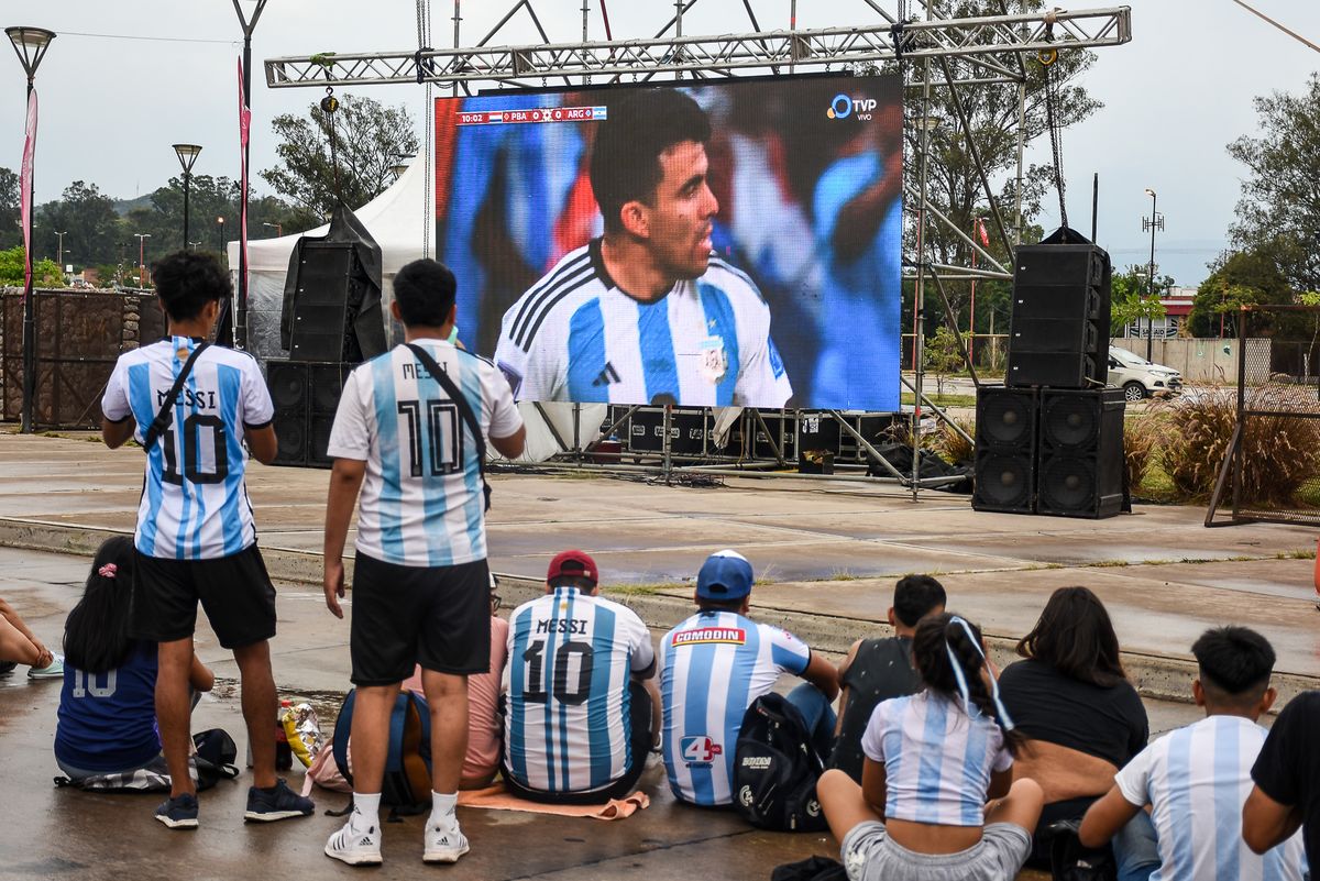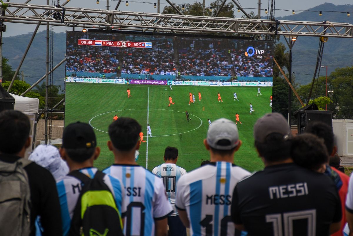 Ruidosas multitudes de hinchas de la selección argentina se congregaron para ver el gran partido en el que hoy el combinado albiceleste eliminó al equipo de Países Bajos y se clasificó a semifinales.