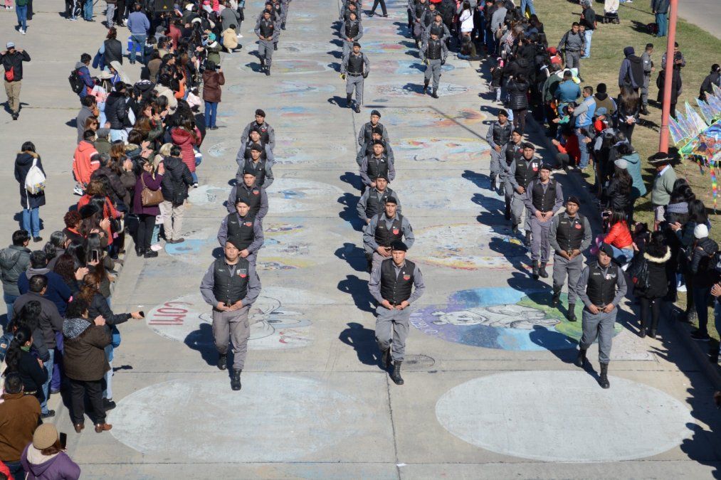Seguidamente se desplegó el tradicional desfile con la participación de los distintos cuerpos de efectivos, acompañados de los estudiantes del Instituto Universitario Provincial de Seguridad y agrupación gaucha de la institución.