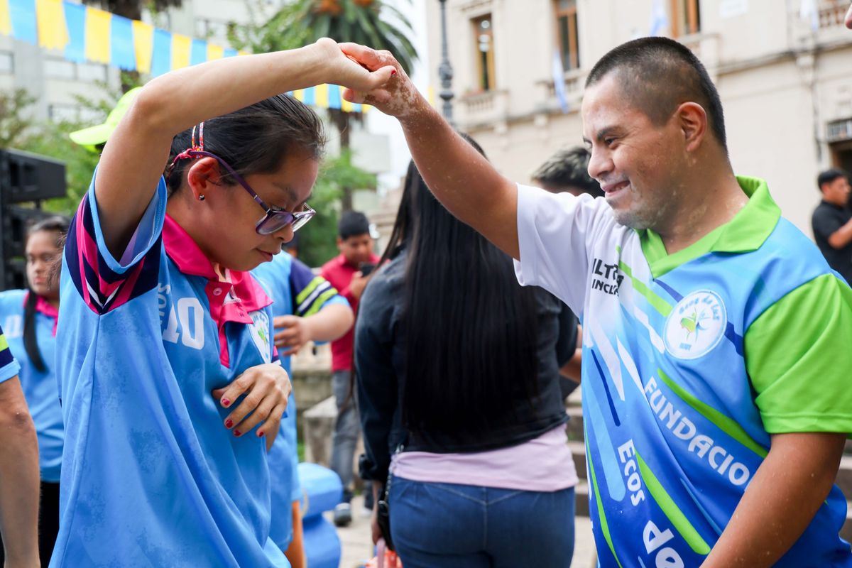 El gobernador Carlos Sadir acompañó la actividad que desarrolló la Fundación Ecos de Luz en el marco de la conmemoración del Día Mundial del Síndrome de Down en la plaza España de Casa de Gobierno. La Asociación Todos Juntos y de Básquet Adaptado también participaron.