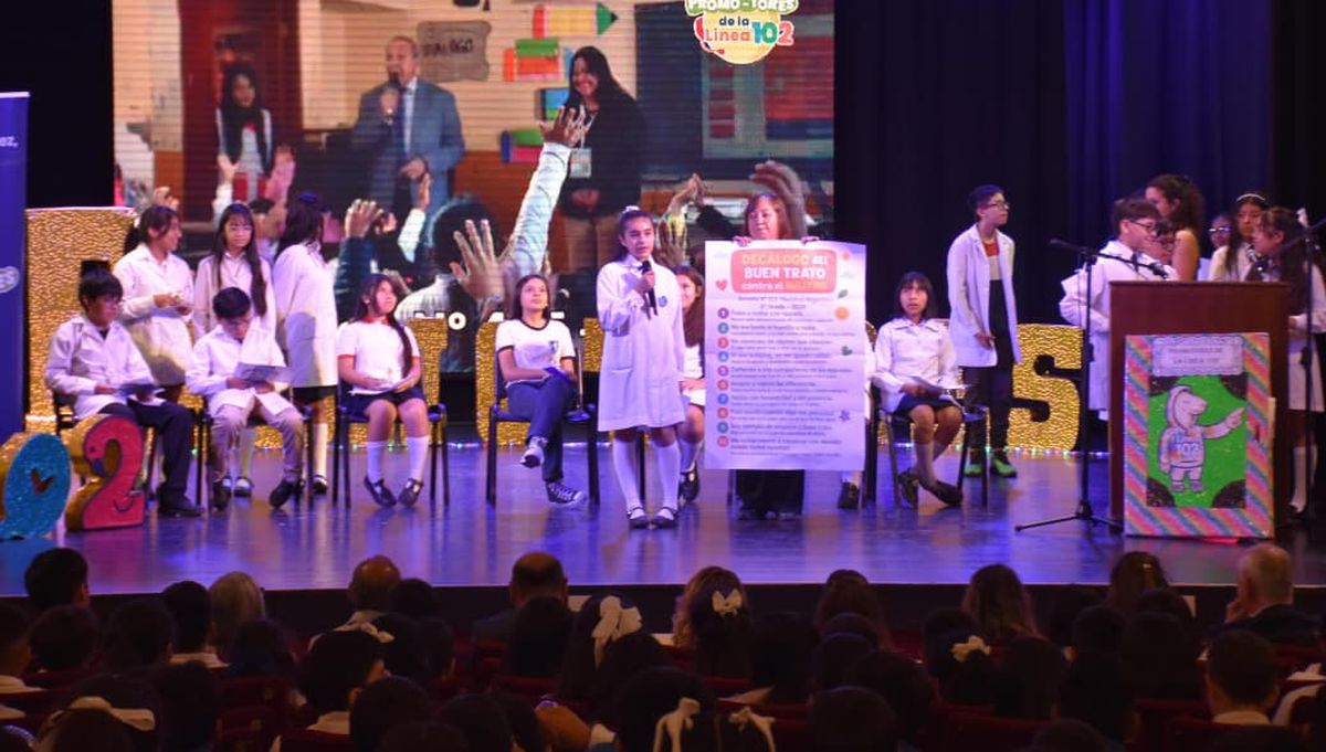 El Ministerio de Desarrollo Humano, a través de la Secretaría de Niñez, Adolescencia y Familia, llevó adelante el acto de cierre del Programa “Somos Promotores de la Línea 102” edición 2025, donde se anunció que la Escuela Nº 396 Rocha Solórzano fue la institución ganadora del concurso provincial con su proyecto “La Súper Señal 102, tu poder”, una propuesta creativa orientada a fortalecer la difusión de esta línea de acompañamiento, escucha y protección para niñas, niños y adolescentes.
