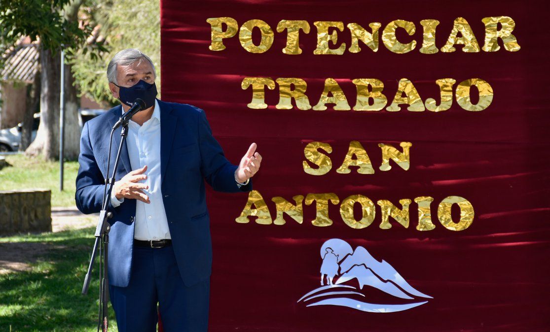 El gobernador Gerardo Morales encabezó un nuevo acto de entrega de herramientas del plan Potenciar Trabajo, en la localidad de San Antonio. Esta medida potenciará proyectos dentro del ámbito municipal. Una de las iniciativas más importantes, es el proyecto de captación de agua para consumo y riego.